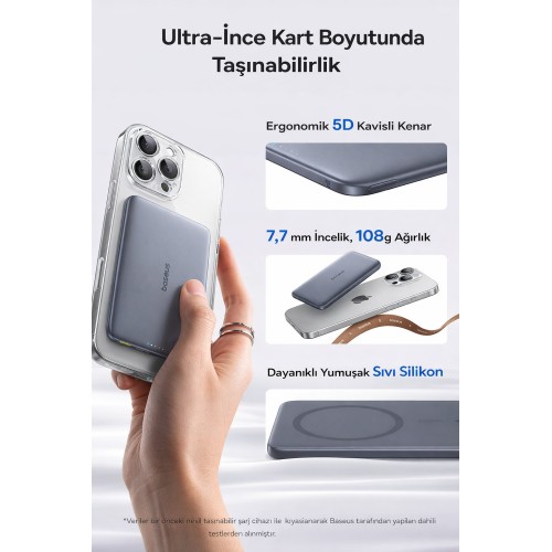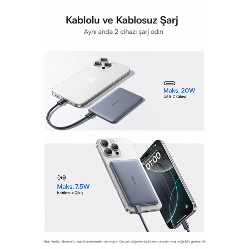 Baseus PicoGo AM41 Ultra İnce 5000mAh Power Bank - 20W - MagSafe Uyumlu Hızlı Şarj Cihazı ve Kablosuz Şarj Özelliği