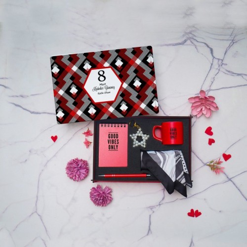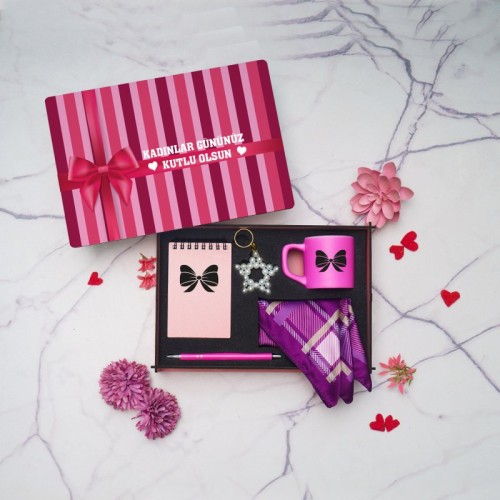 Kadınlar Günü Hediye Seti – Ahşap Kutu, Defter, Kalem, Fincan, Anahtarlık, Fular GML-C3130