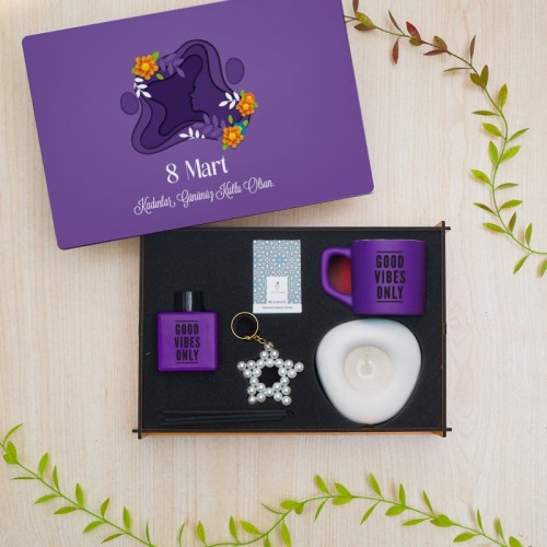 Kadınlar Günü’ne özel olarak hazırlanan bu zarif hediye seti; estetik tasarımı ve kullanışlı içeriğiyle sevdiklerinize unutulmaz bir armağan sunar. Set içerisinde yer alan 26 x 18 cm ölçülerindeki MDF dekoratif ahşap kutu, sürekli kullanılabilir yapısıyla hem saklama hem de dekoratif amaçlı kullanım imkânı sağlar.